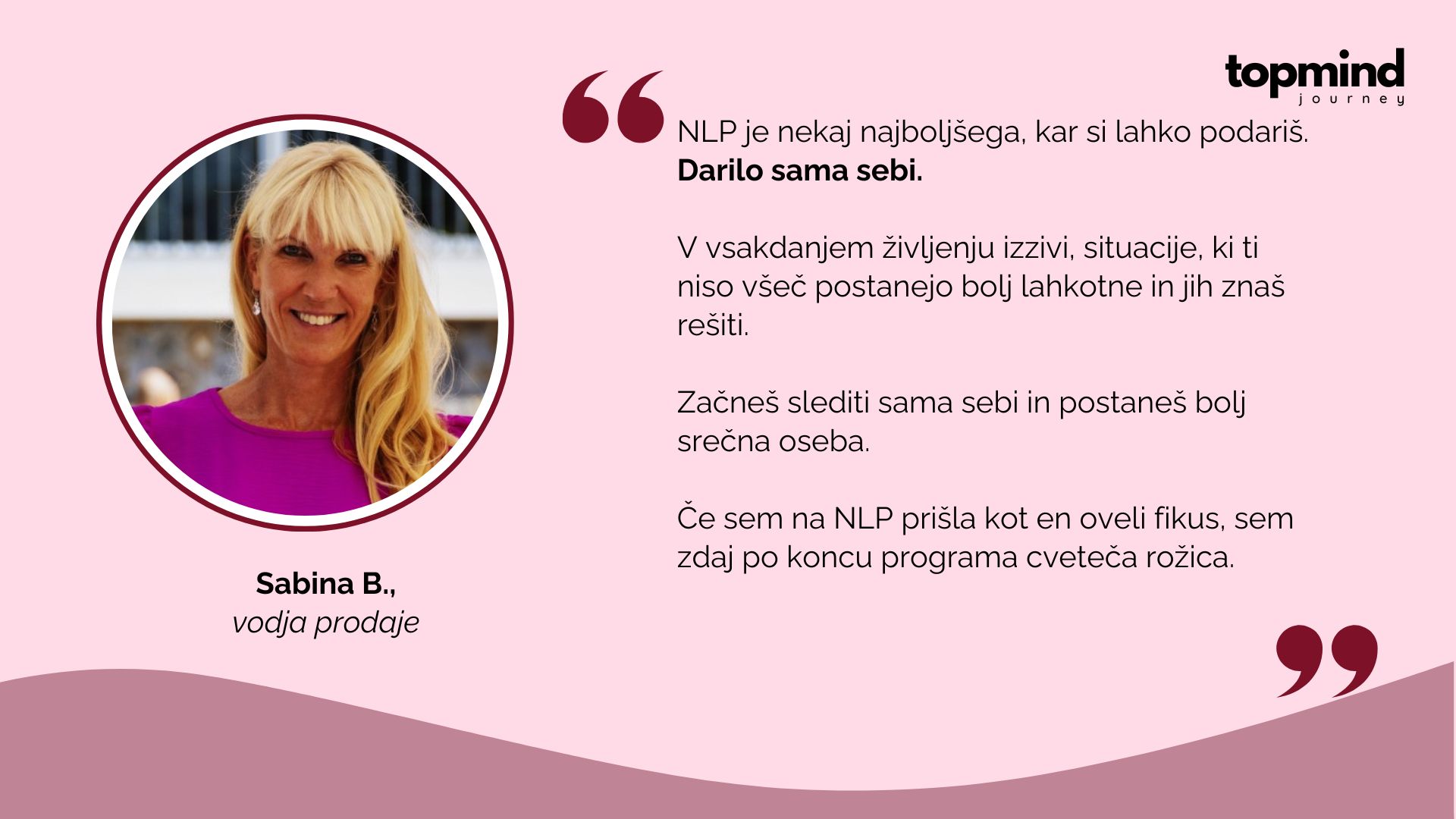 - Ker nas družba pogosto uči ugajati. NLP tehnike ti pokažejo, kako postaviti meje, reči »ne« brez občutka krivde in hkrati ohraniti spoštovanje v odnosih.